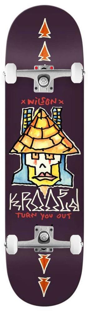 Krooked Andrew Wilson Pro Model, designed to Andrew’s exact specifications for the perfect mix of control and performance. The bottom ply features a playful graphic of a figure, possibly human, wearing a pyramid as a hat, with two towering skyscrapers in the background adding a INGonzIN surreal twist. Traditional 7-ply maple construction. Width: 8.38IN Length: 32.25IN Wheelbase: 14.50IN Light blue and orange bottom veneers. Artwork by Mark INGonzIN Gonzales.
