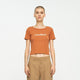 70% cotton, 30% polyester, 210gsm rib jersey, cropped fit, short sleeve t-shirt with front print